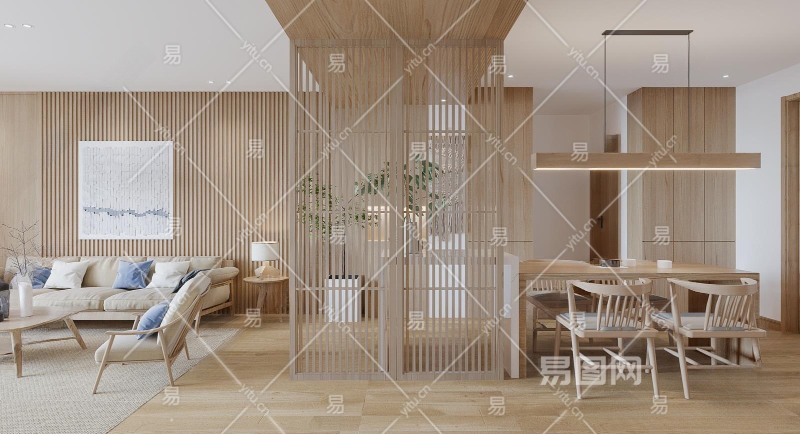 日式客厅3D模型下载