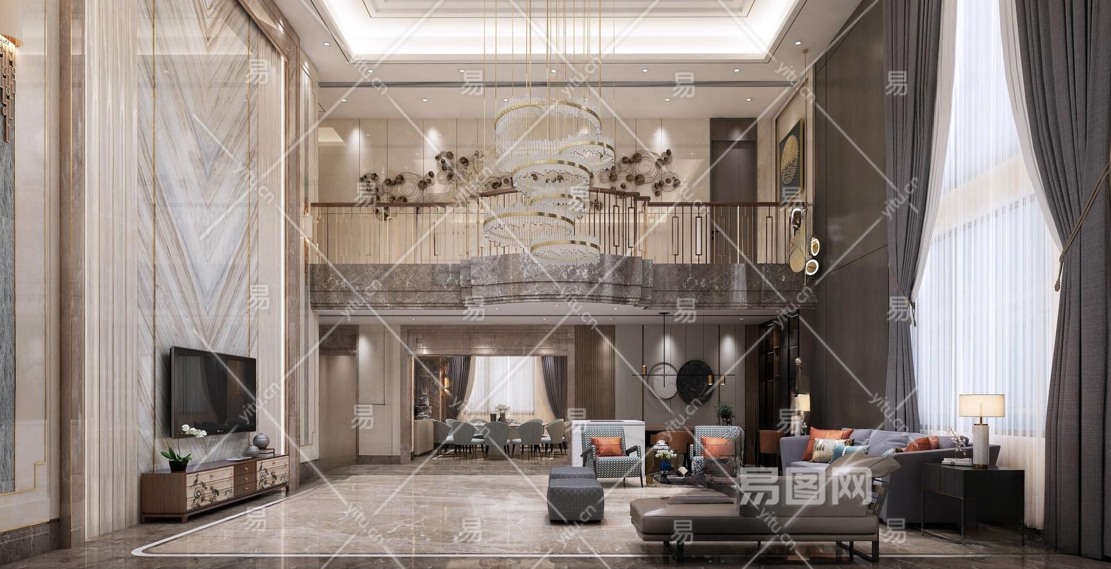现代别墅客厅3D模型下载