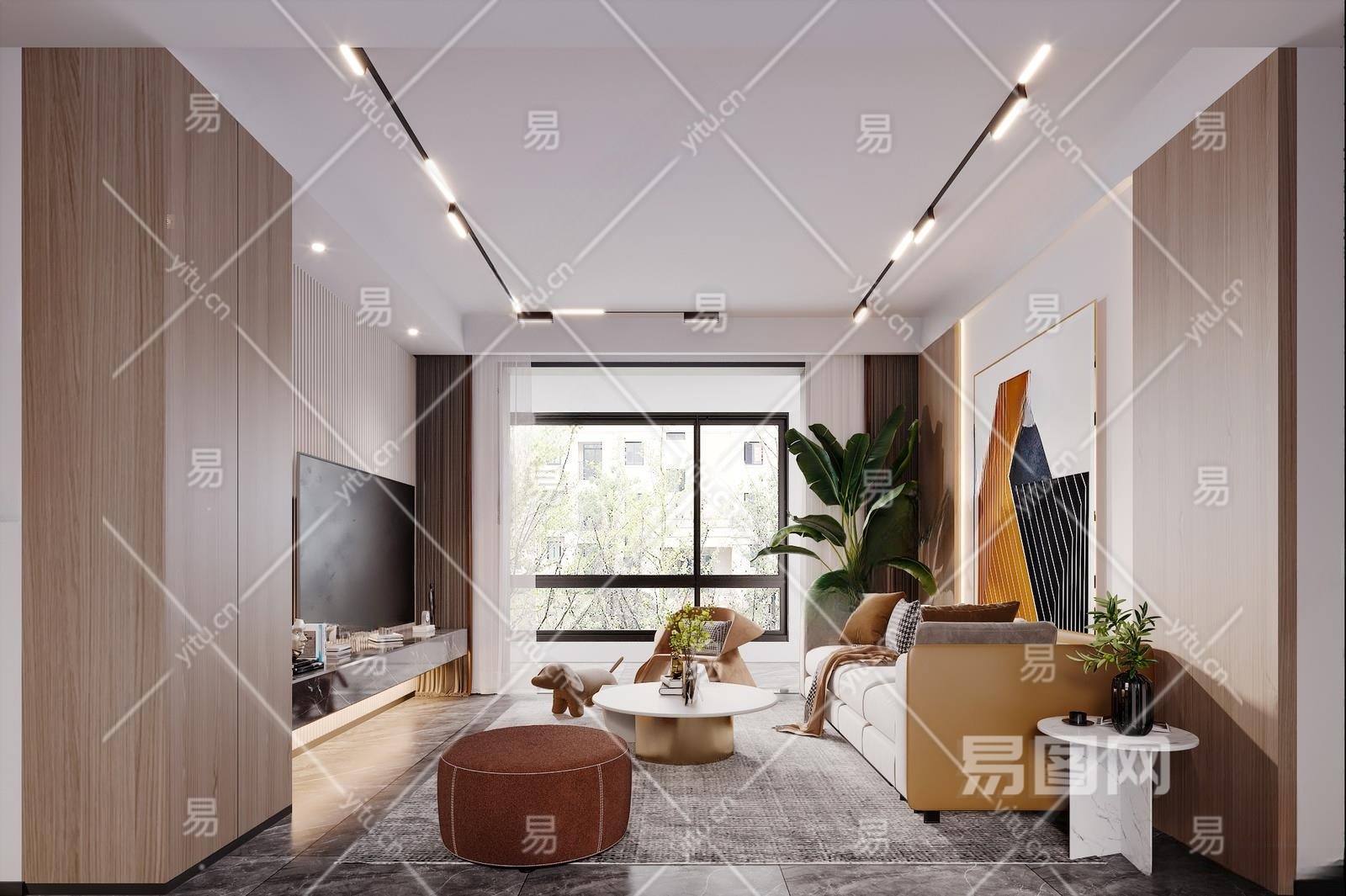 现代客厅3D模型下载