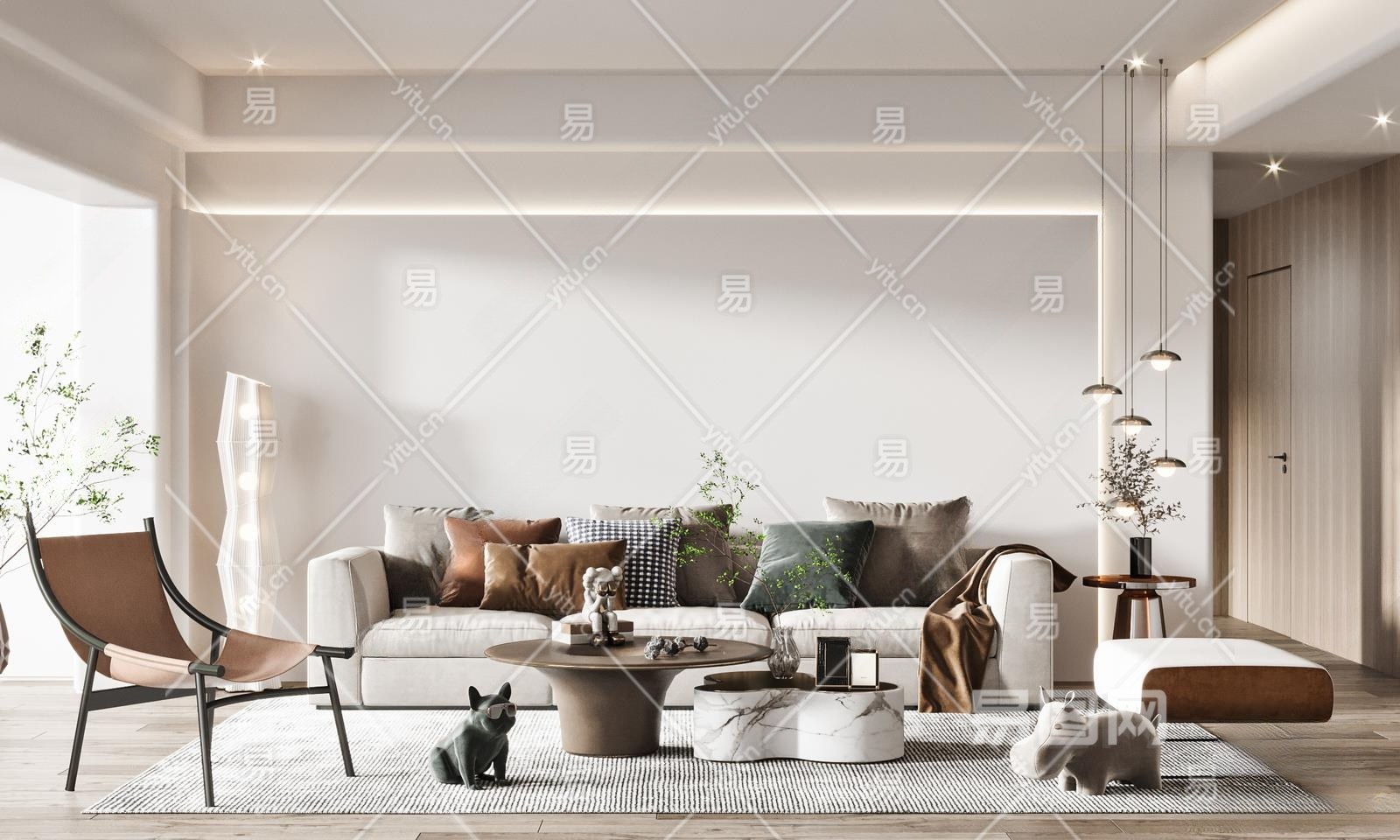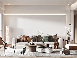 现代客厅3D模型下载