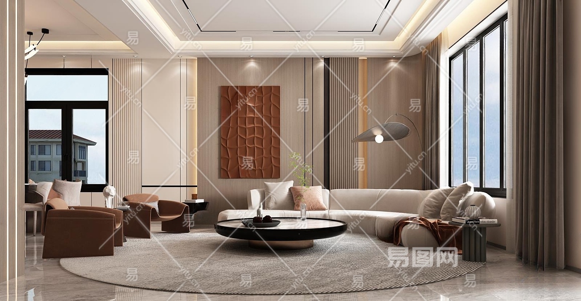 现代别墅客厅3D模型下载