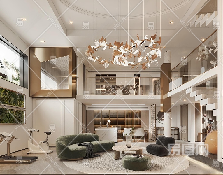 现代别墅客厅3D模型下载