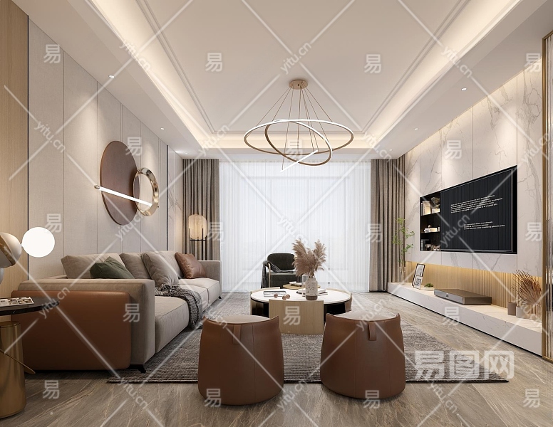 现代家居客厅3D模型下载