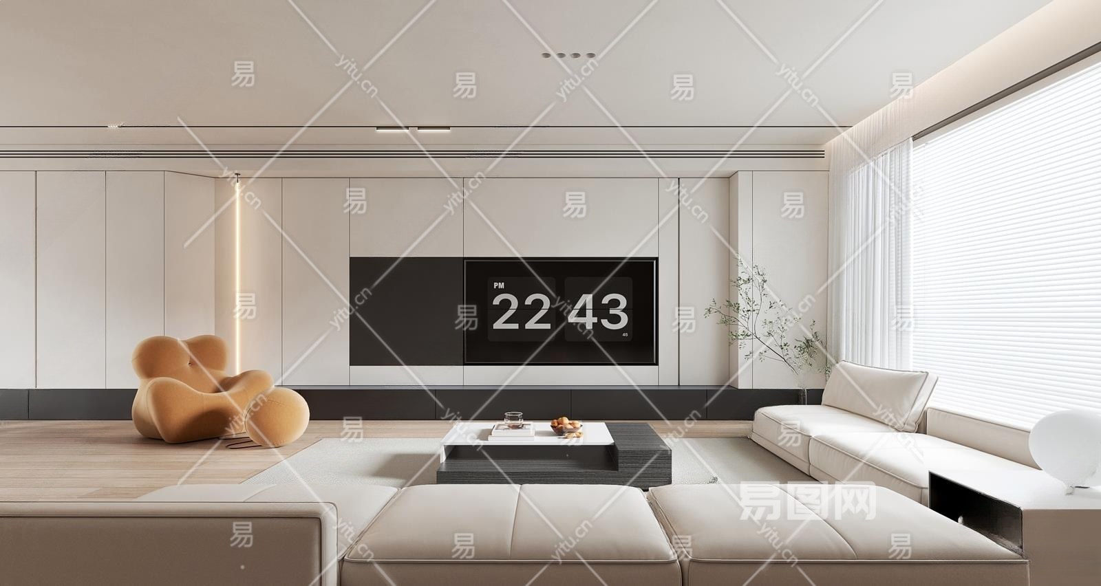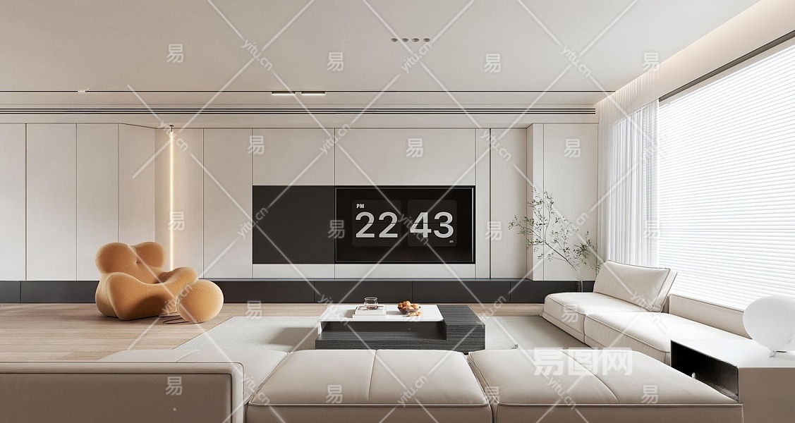 现代极简客厅3D模型下载