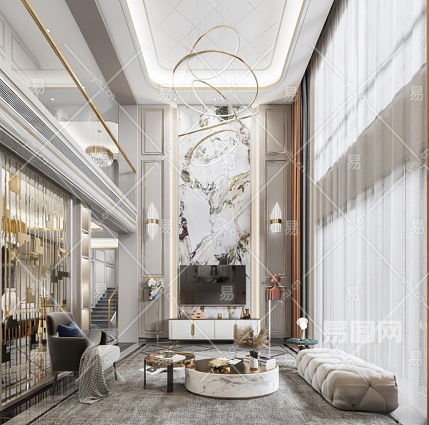 现代别墅客厅3D模型下载