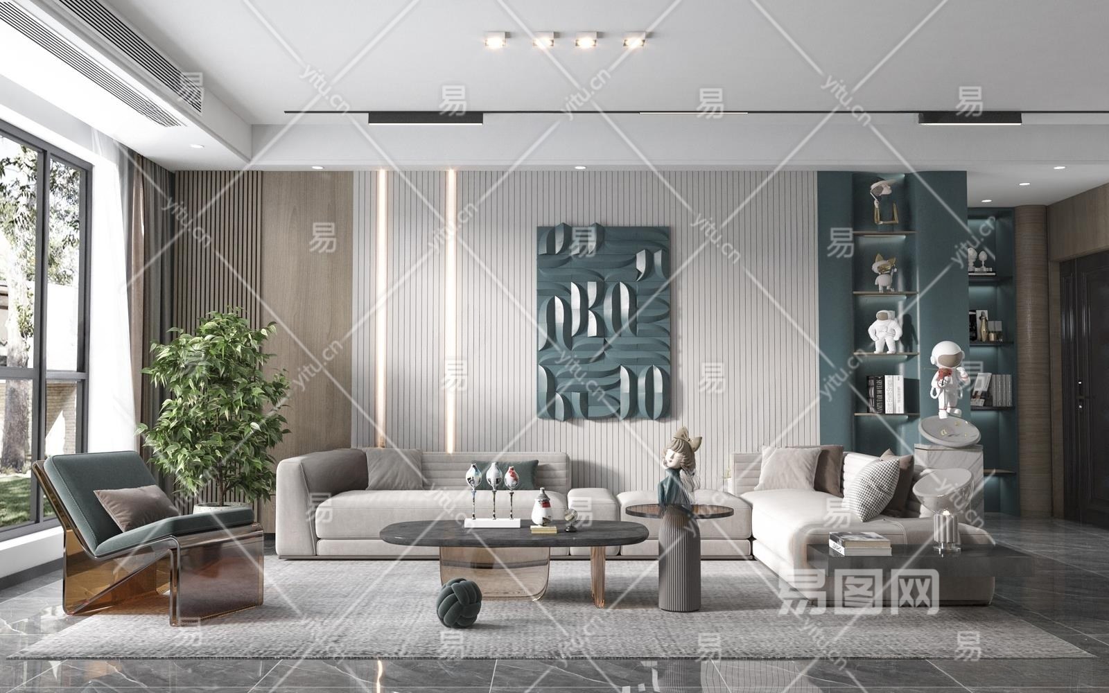 现代家居客厅3D模型下载