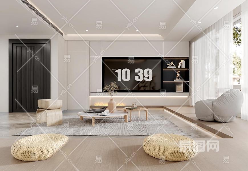 现代客厅3D模型下载