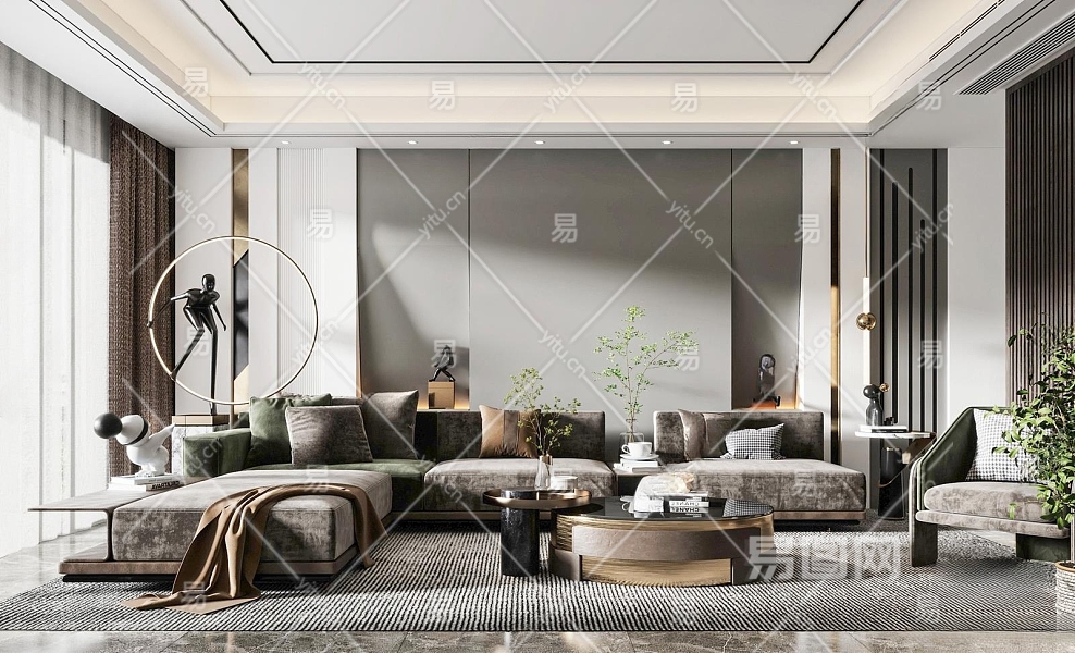 现代客厅3D模型下载