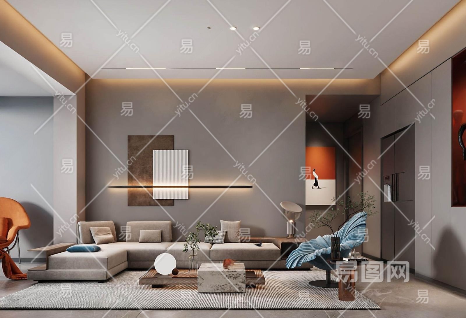 现代客厅3D模型下载