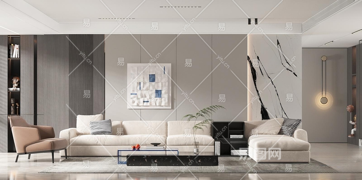 现代家居客厅3D模型下载