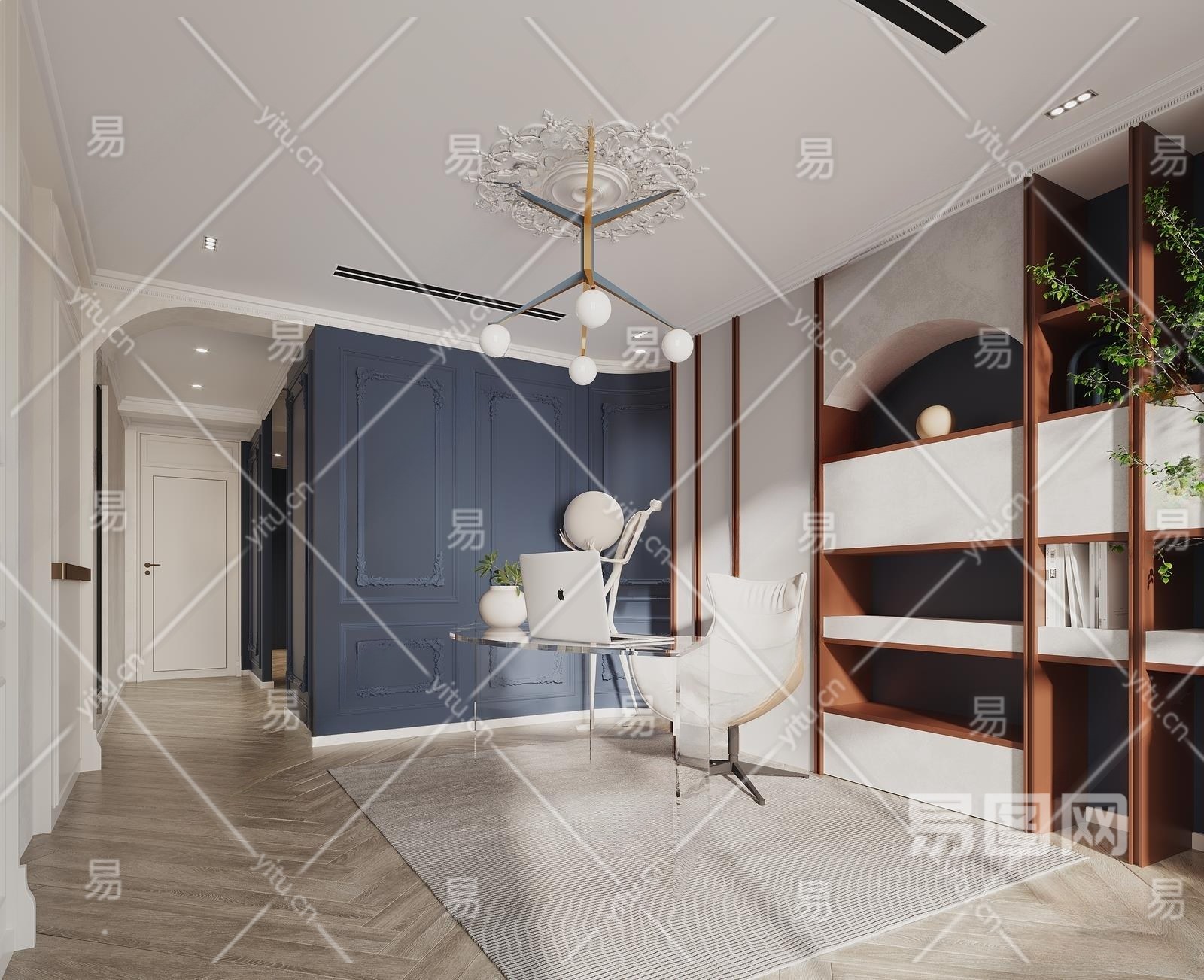 法式书房3D模型下载