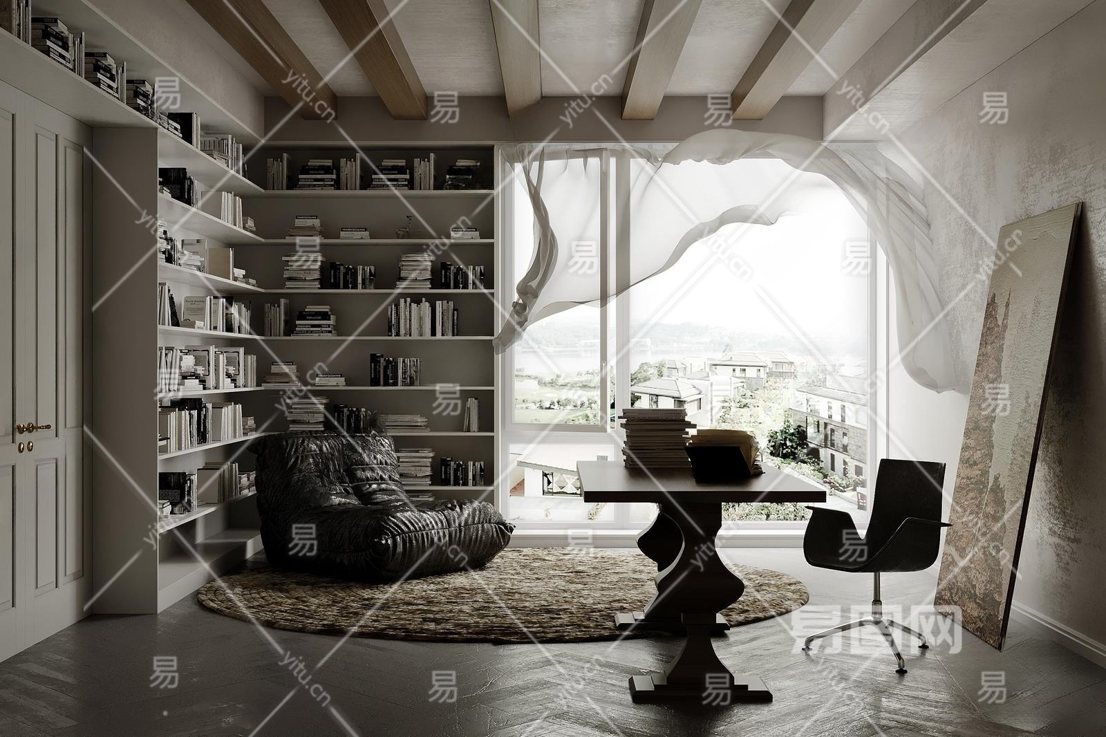 法式书房3D模型下载