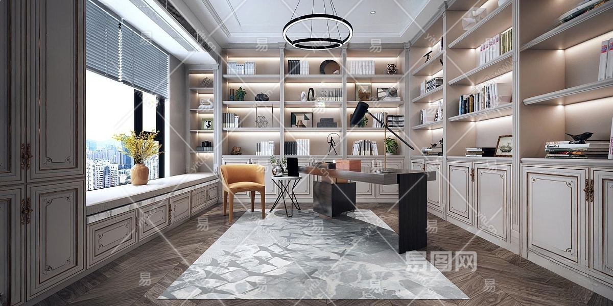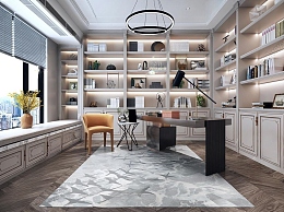 简欧欧式别墅书房3D模型下载