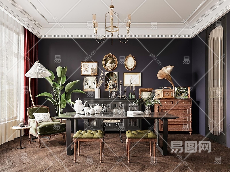 美式书房3D模型下载