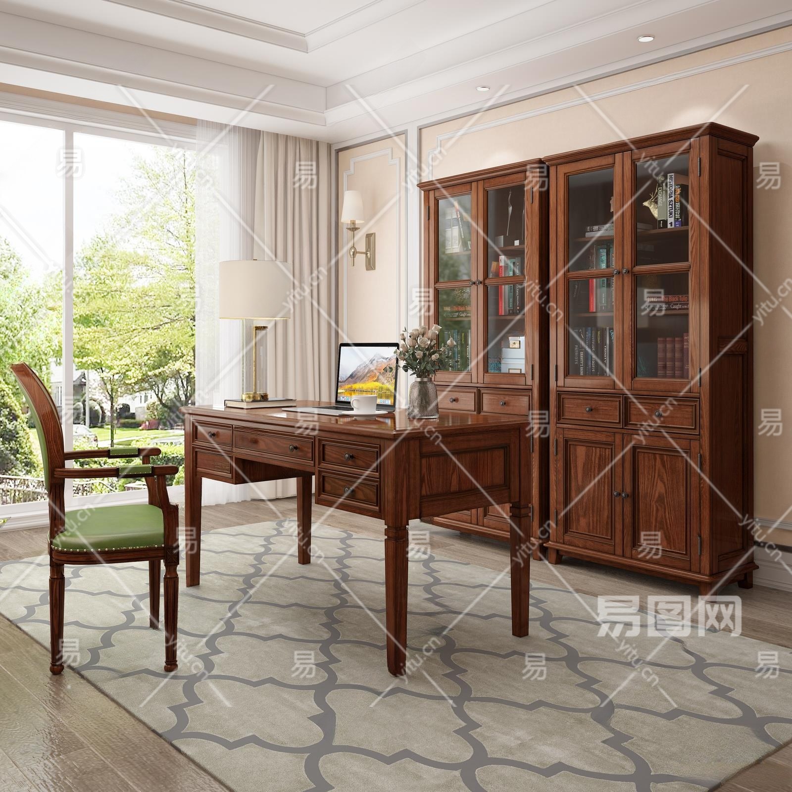 美式书房3D模型下载