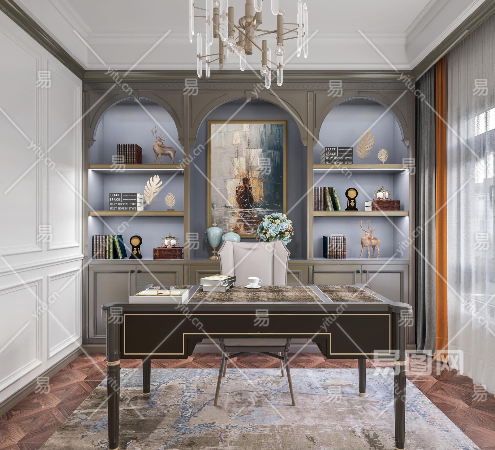 美式书房3D模型下载