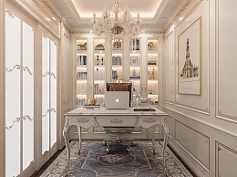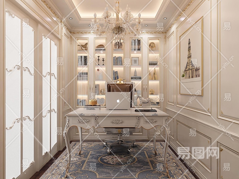 欧式古典别墅书房3D模型下载