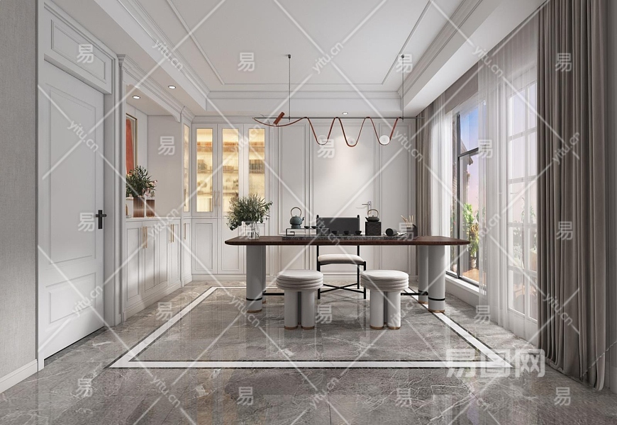 美式轻奢书房3D模型下载