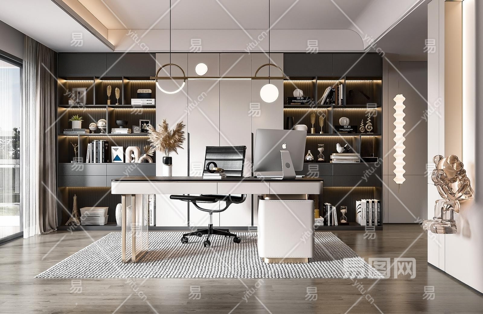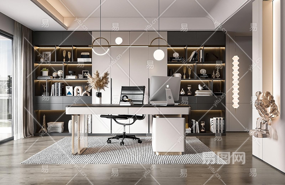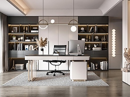 现代书房3D模型下载