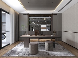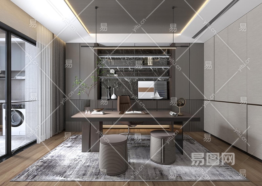现代书房3D模型下载