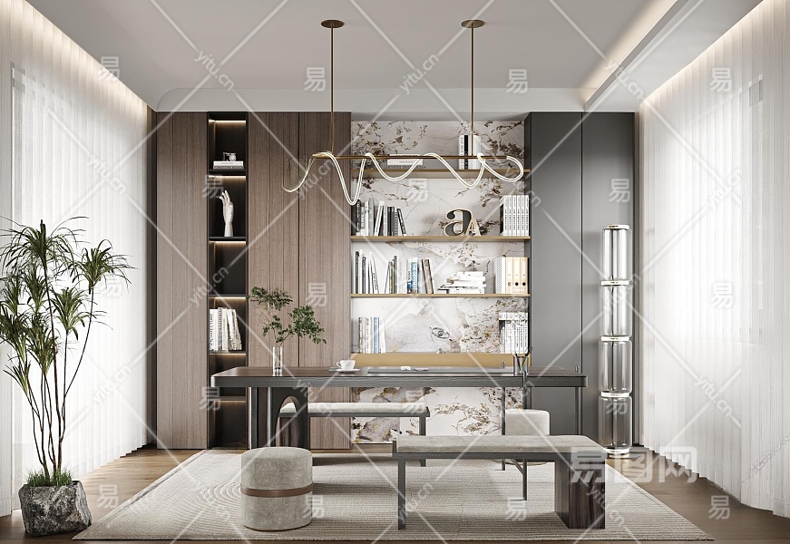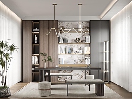 现代书房3D模型下载