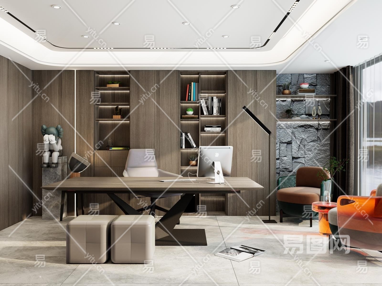 现代书房3D模型下载