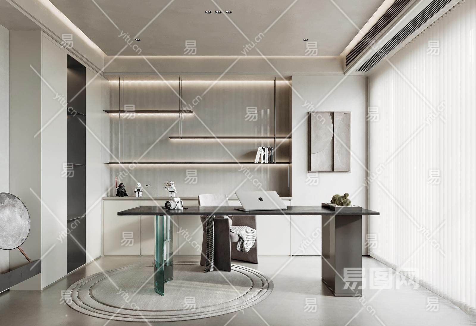 现代书房3D模型下载