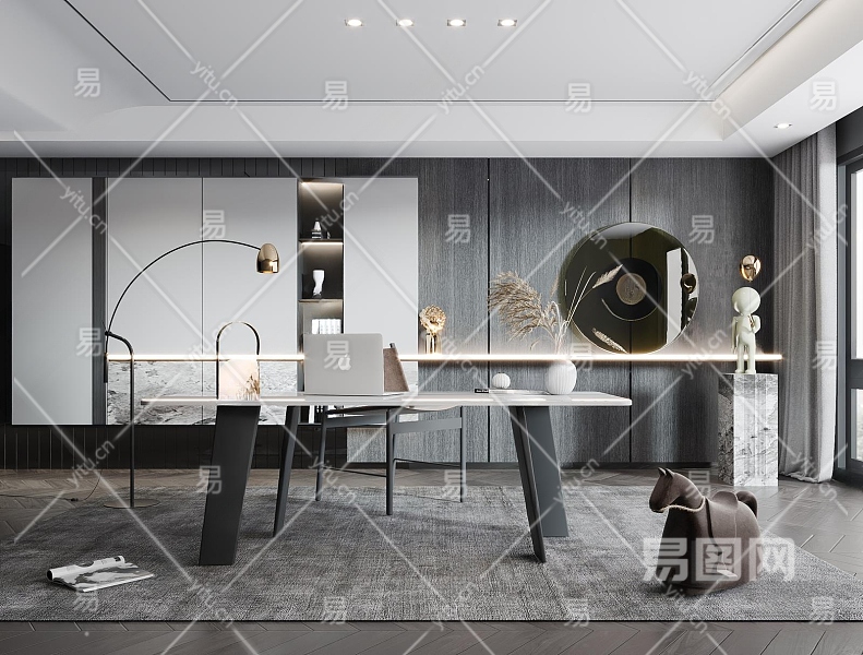 现代家居书房3D模型下载