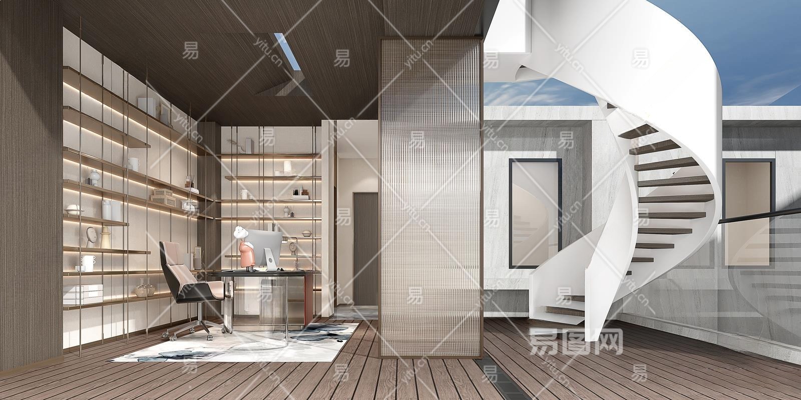 现代书房3D模型下载