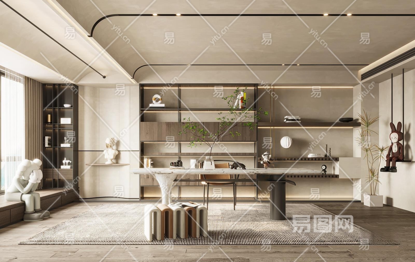 现代家居书房3D模型下载