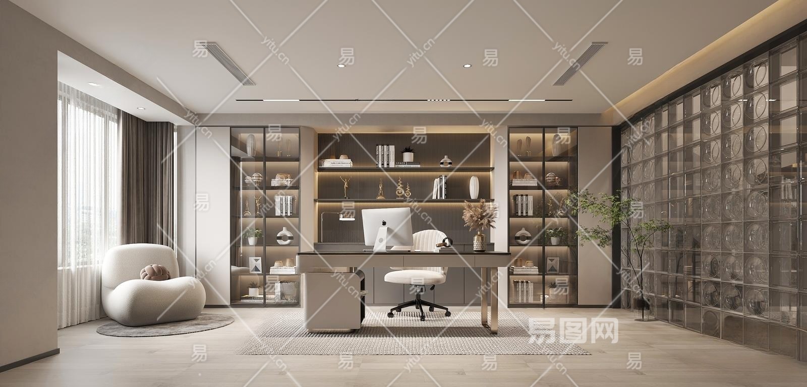 现代书房3D模型下载