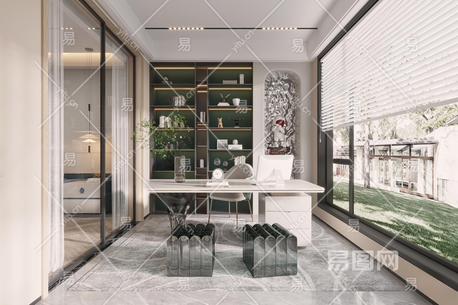 现代书房3D模型下载