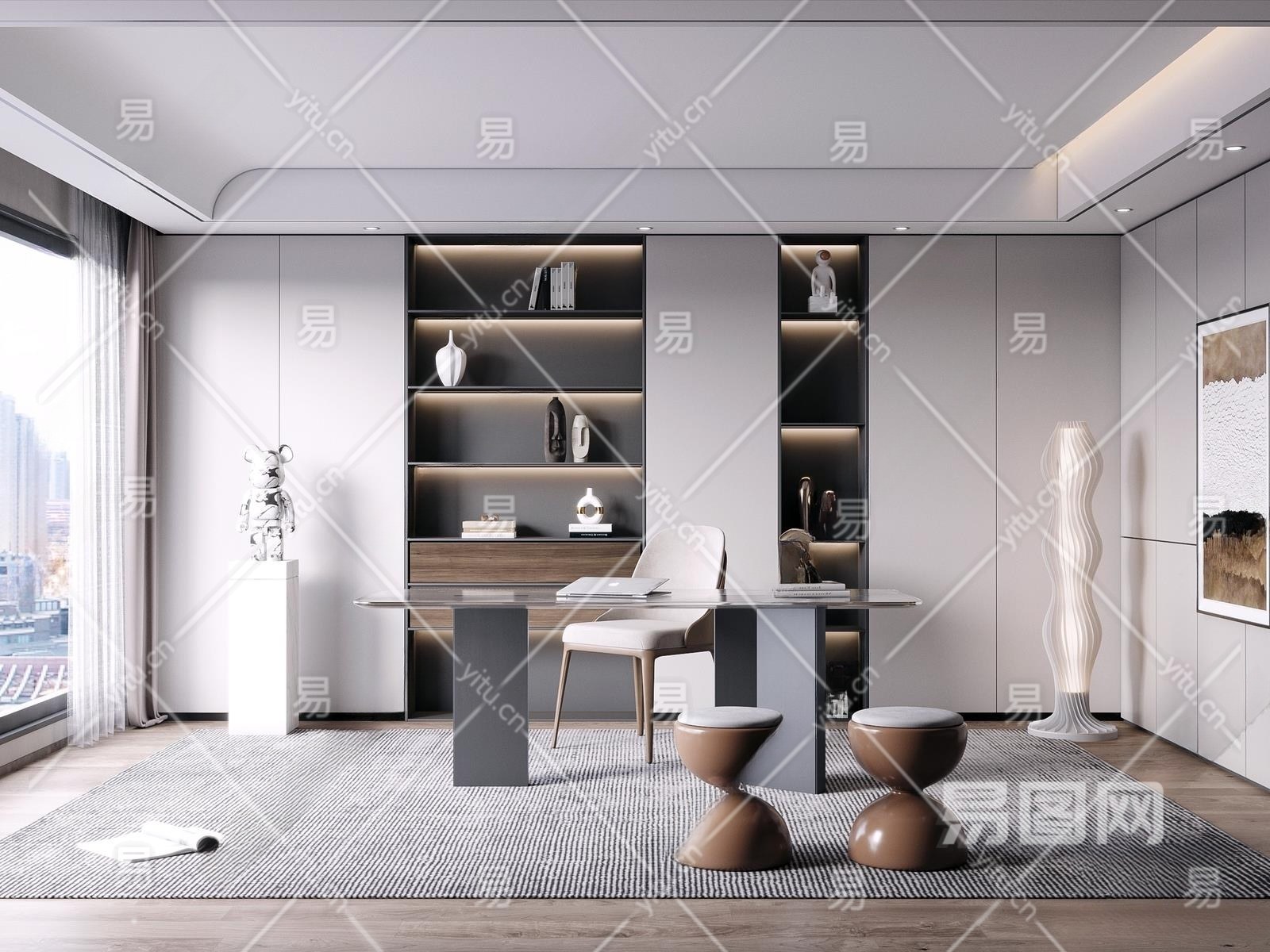 现代家居书房3D模型下载