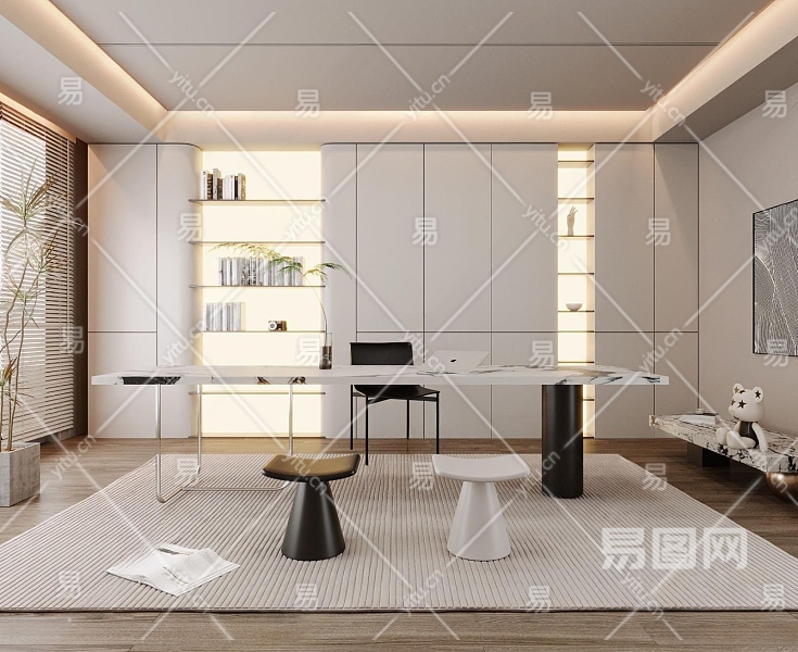现代书房3D模型下载