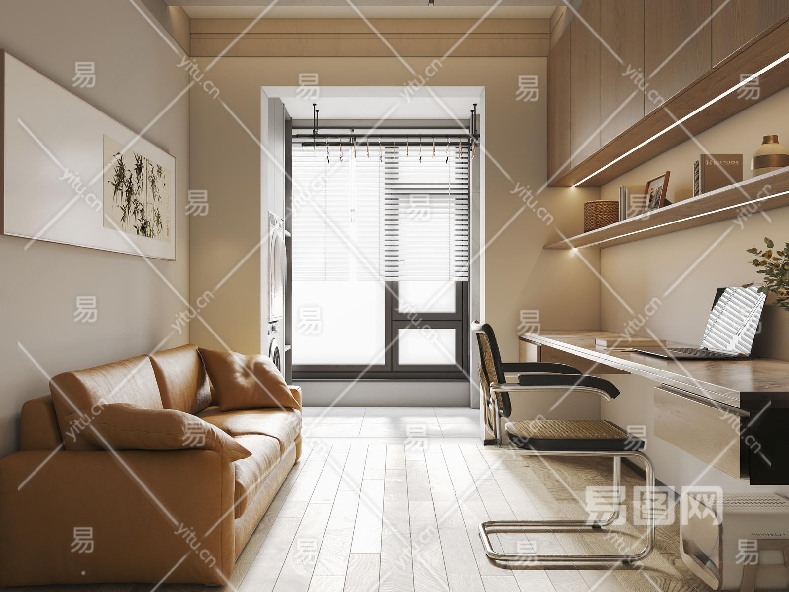 现代书房3D模型下载