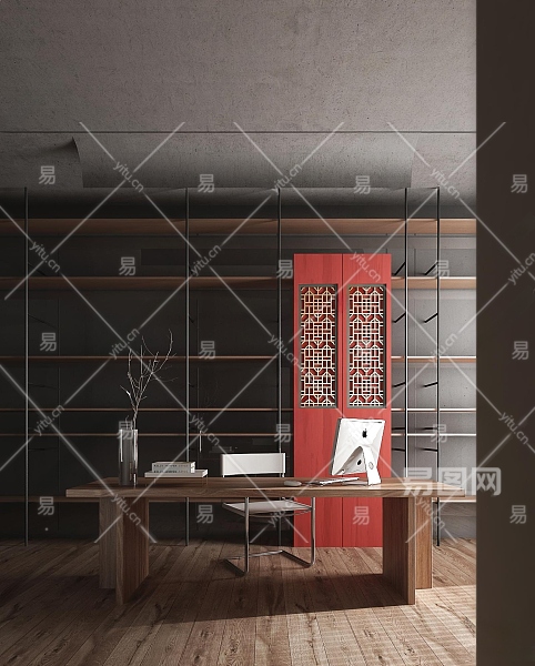PDD深点设计现代中古风书房3D模型下载