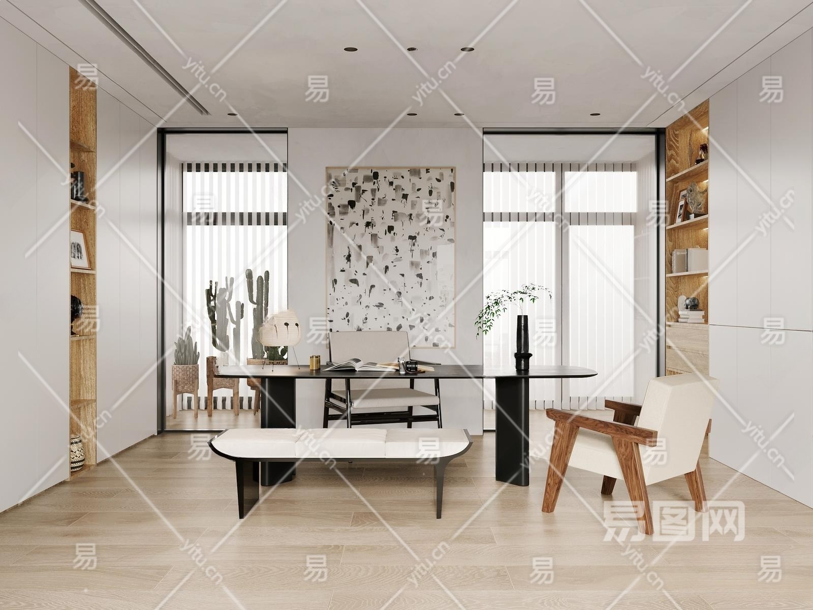 现代书房3D模型下载