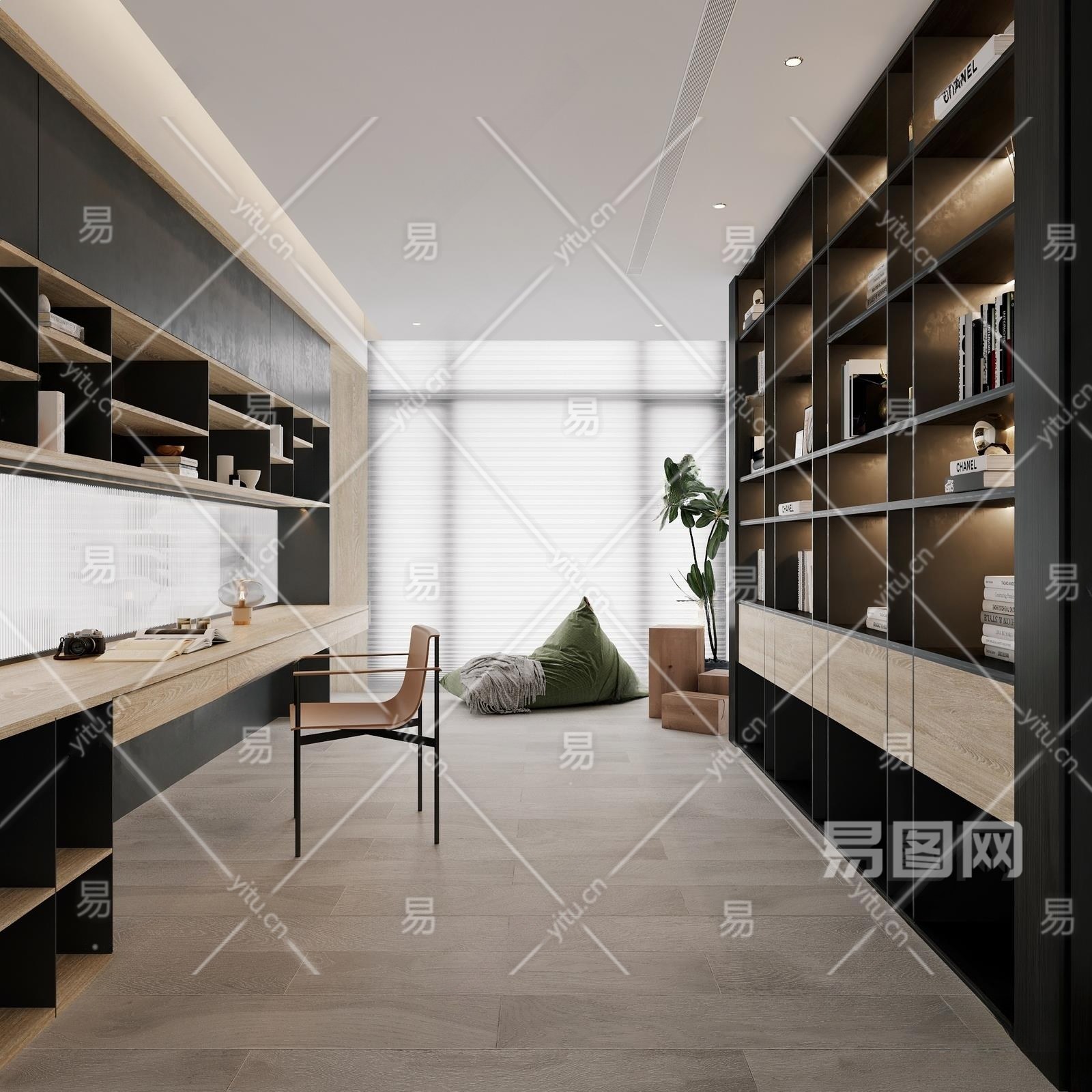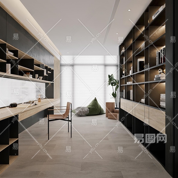 现代书房3D模型下载