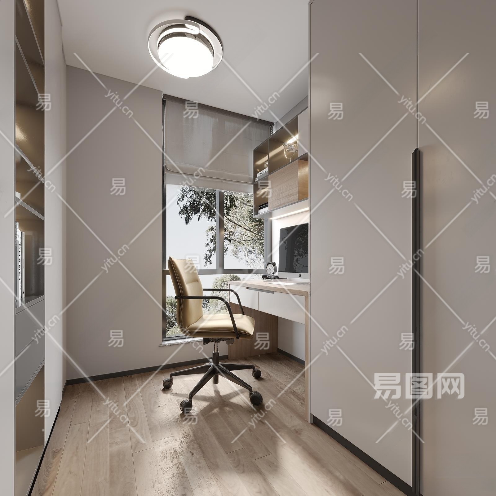 现代书房3D模型下载