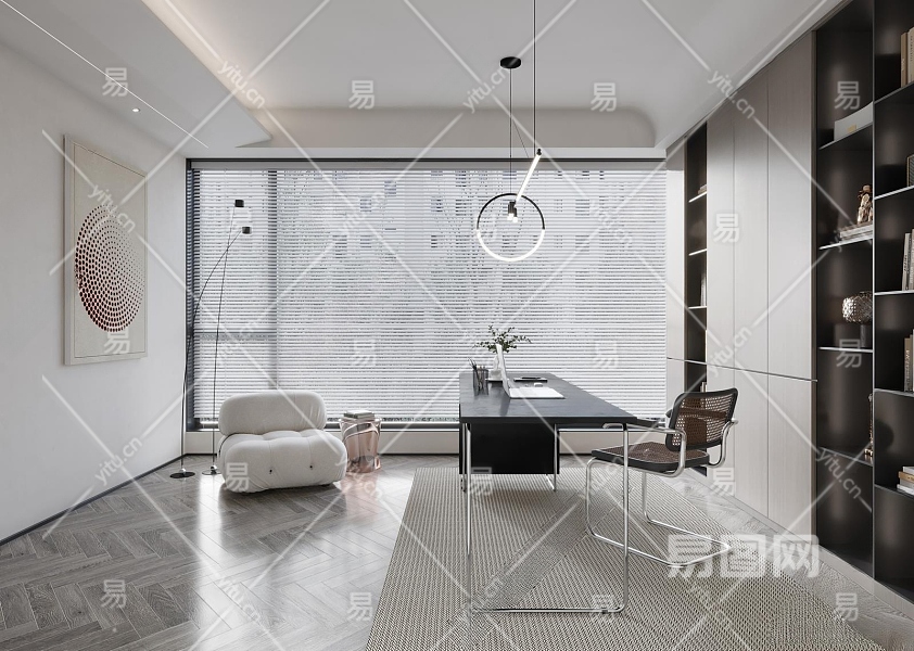 现代书房3D模型下载