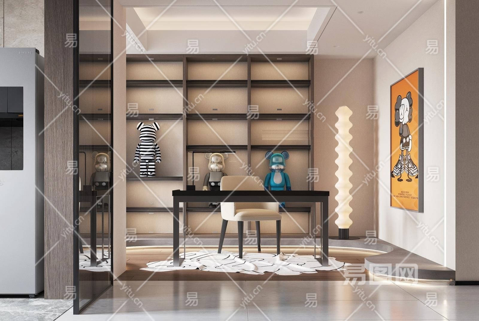 现代书房3D模型下载