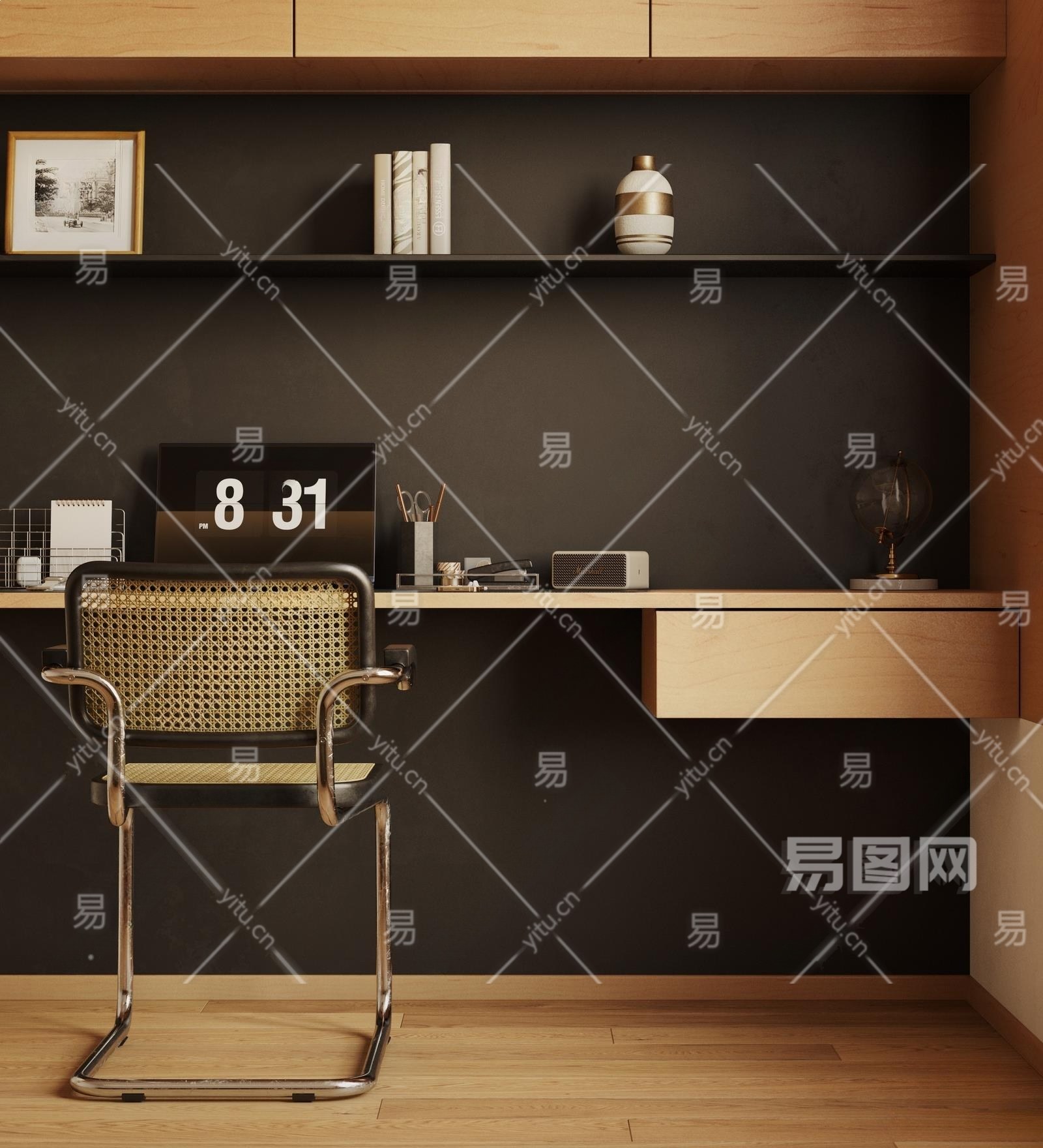 现代书房3D模型下载