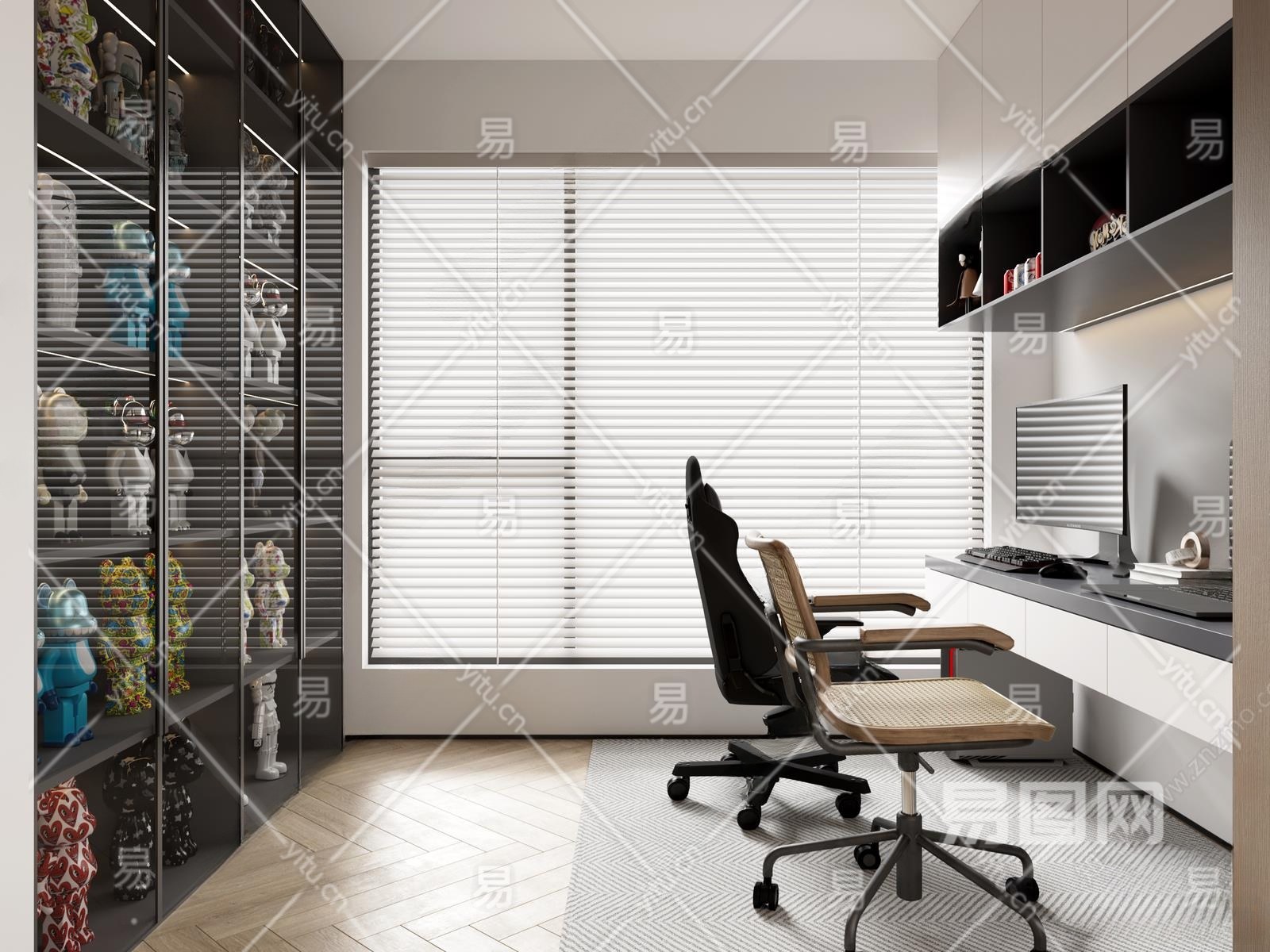 现代书房3D模型下载