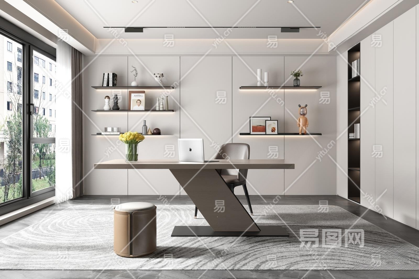 现代书房3D模型下载