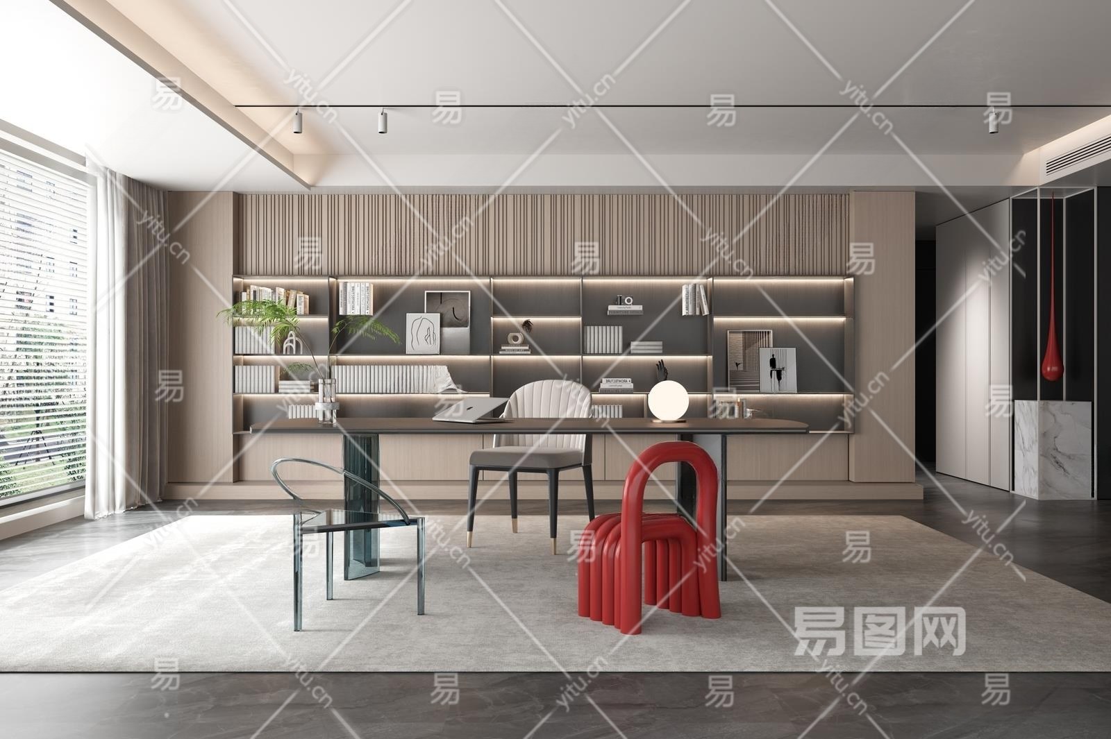 现代书房3D模型下载