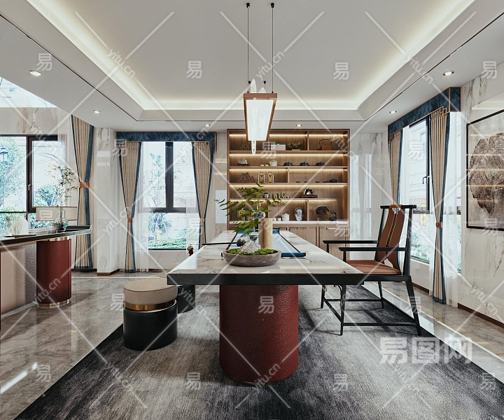 新中式书房3D模型下载