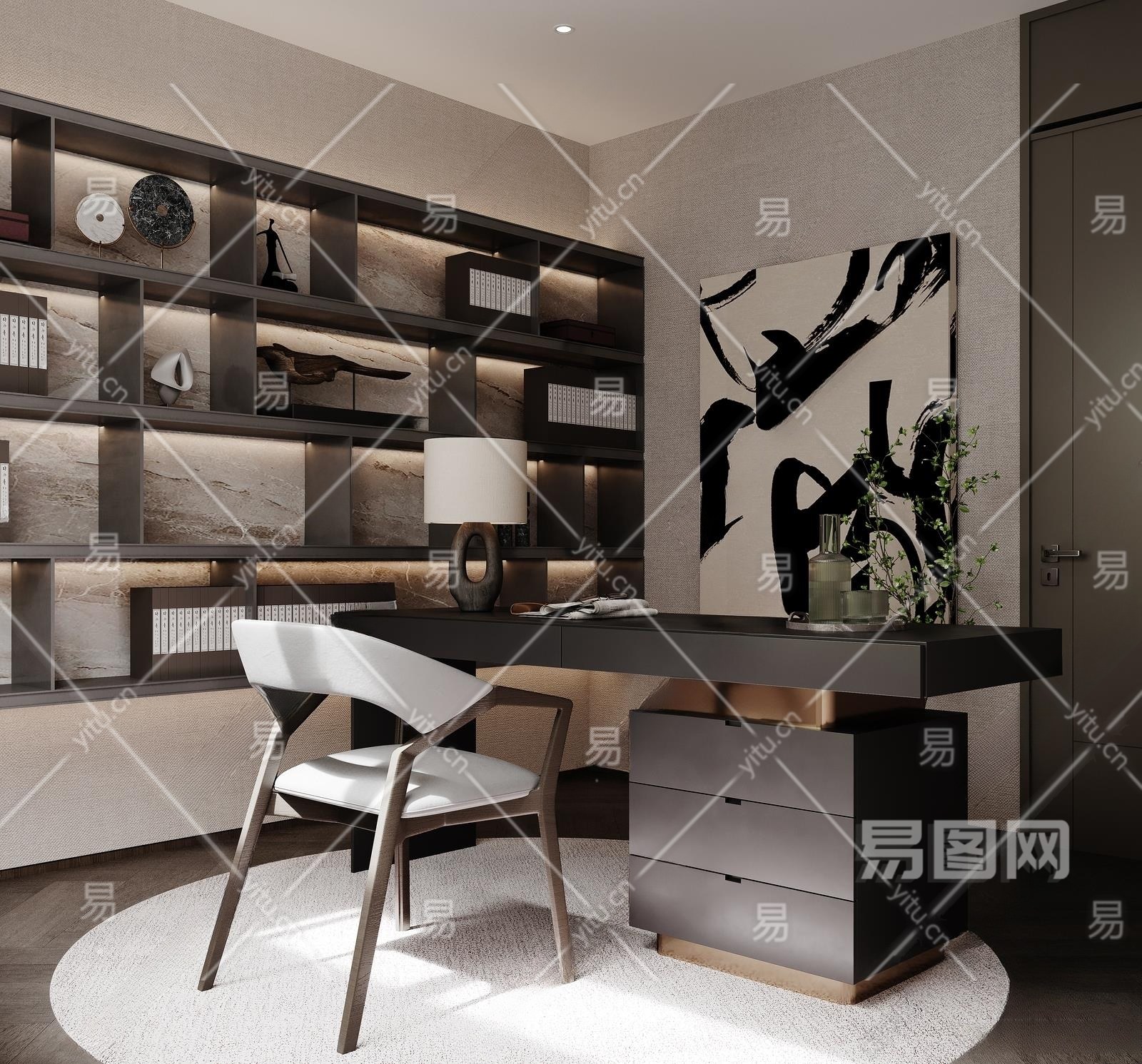 新中式书房3D模型下载