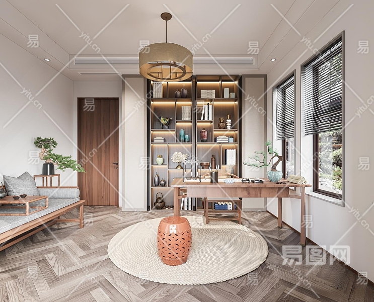 新中式书房3D模型下载