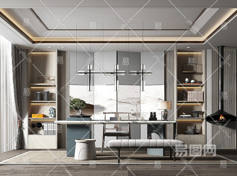 当前的位置:首页 > 3D模型 > 家装空间 > 书房 > 新中式家居书房3D模型下载