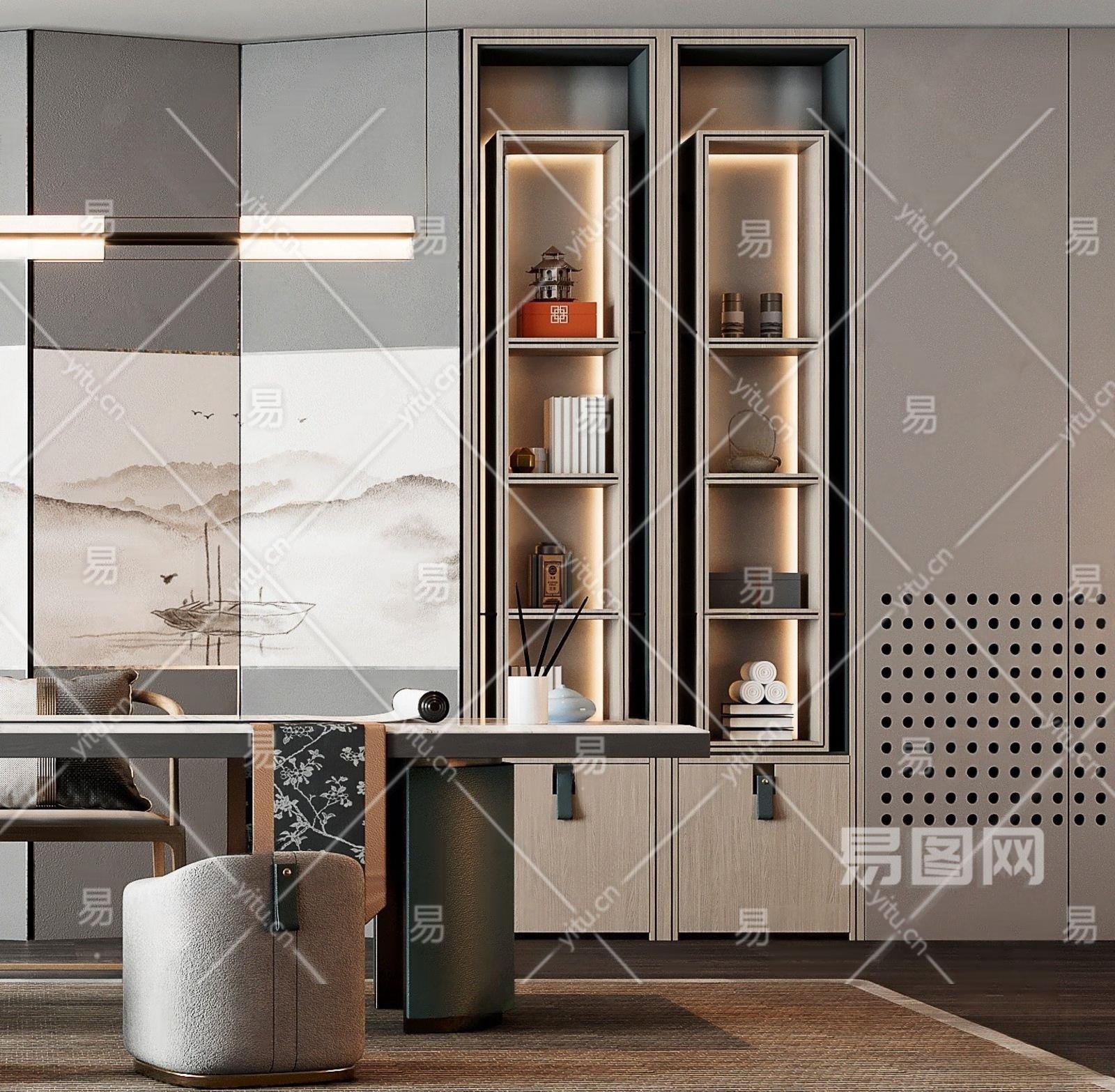新中式书房3D模型下载